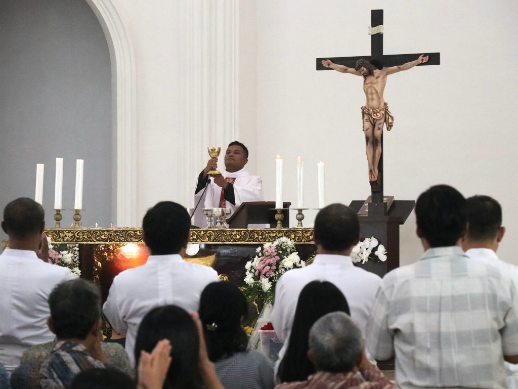 GUNUNG PUTRI – Hari ini, Minggu, 12 April 2026 menjadi hari yang penuh berkat dan sukacita. Seluruh umat Katolik merayakan Minggu Paskah II yang bertepatan dengan Minggu Kerahiman Ilahi. Perayaan ini dirayakan tepat satu minggu setelah Hari Raya Paskah. Kita diajak untuk merenungi kasih Allah yang jauh lebih dahulu bahkan sebelum kita mengerti. Kerahiman Tuhan tidak mengenal batas apapun. Seperti biasanya, Perayaan Ekaristi hari ini dipimpin oleh RD. Yulius Eko Priyambodo yang berlangsung dengan khidmat dan penuh makna rohani.